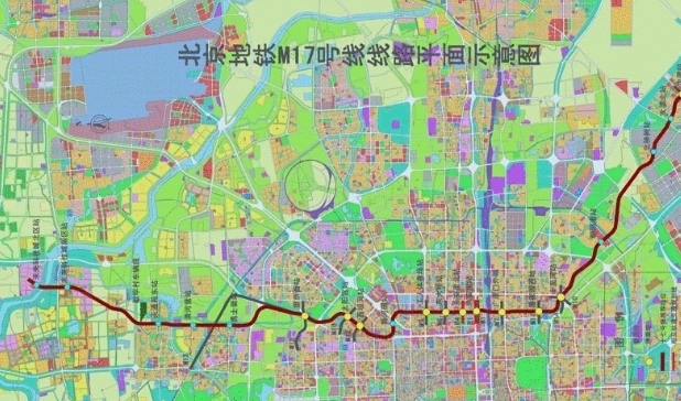 3.M17号线(昌平区未来科技城至亦庄新城站),经北苑东路、京承高速、东大桥路等至朝阳港,内长32.7公里,北苑地区为高架线路,其余为地下线路,共设14座车站。