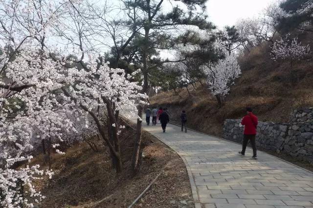 迎春、连翘是最先开放的报春花,观赏期在3月中旬至4月下旬,从公园东门或北门入园,沿大路两边均可依次欣赏。3月下旬至5月中旬,进入北门游览区,首先进入眼帘的,便是满林地恣意盛放的二月兰。3月底至4月初,在东门碑亭广场处即可欣赏到白的、紫的朵朵饱满娇艳的玉兰花,花期10天左右。3月中旬至4月,山桃、山杏、碧桃沿登山大路至山顶依次怒放,望乡亭、法国教堂等处可近距离大面积观赏。还可深入林谷深处,沿天摩沟路,途经黑山扈抗日纪念园,稍作停留,重温历史,缅怀先烈。