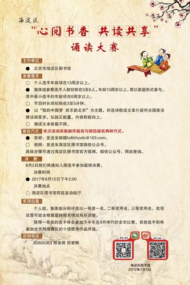 未经允许不得转载:海淀北部便民平台 » 海淀区 在6月至8月开展 心阅书香 共读共享 诵读大赛活动