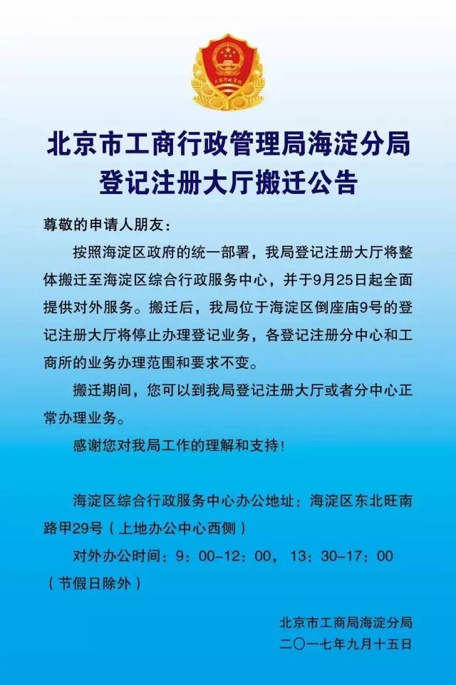 未经允许不得转载:海淀北部便民平台 » 重要通知!!9月25日起海淀工商分局登记注册大厅搬新址
