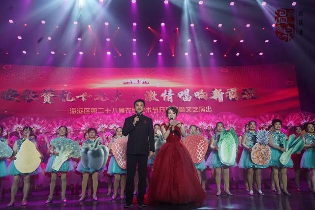 12月19日下午,由海淀区农工委、区文化委联合主办的“欢歌礼赞十九大,激情唱响新海淀”海淀区第二十八届农民艺术节开幕式暨文艺演出在航天城礼堂拉开帷幕。海淀区委农工委书记王桐慧、副书记裴文国、区委宣传部副部长赵萍及海淀区七个乡镇的领导与千余名群众一起观看了演出。温泉镇飞翔舞蹈队参加了此次演出。