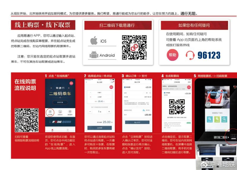 作为北京轨道交通单程票互联网票务官方服务平台,易通行APP自2017年8月20日起在路网部分线路及车站先后试点线上购票、车站取票,以及刷二维码进出站功能,各项功能运行稳定。