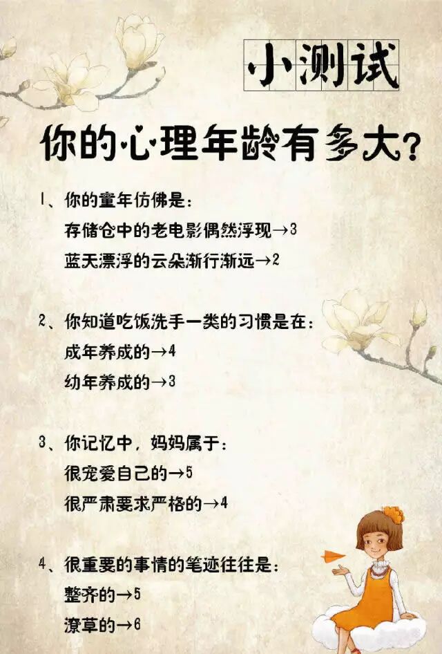 未经允许不得转载:海淀北部便民平台 » 算一下你的心理年龄有多大?
