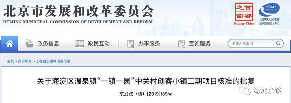 7月1日北京市发改委发布了海淀区温泉镇"一镇一园"中关村创客小镇二期项目核准批复的公告