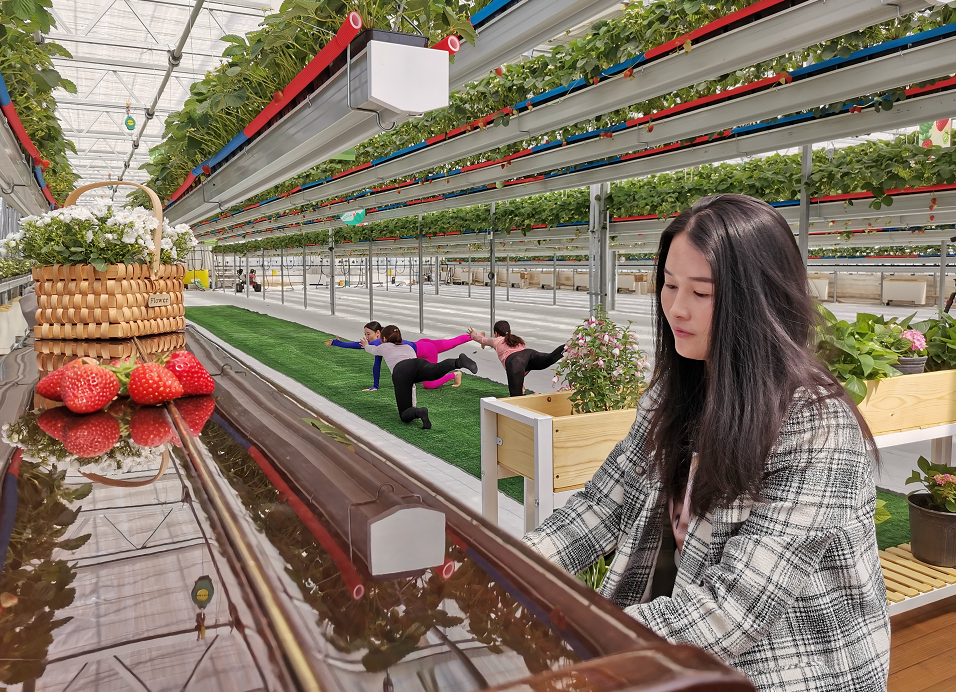 在5G“云端草莓”农业展示基地里,不仅可以采摘草莓,还能欣赏钢琴弹奏,练瑜伽喝咖啡。鼻端充满草莓清香,耳边有音乐萦绕,轻松的环境给人带来一种治愈感。