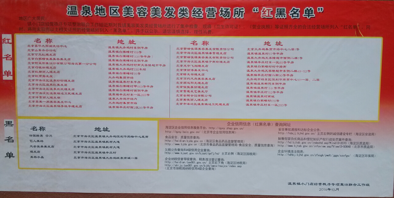 未经允许不得转载:海淀北部便民平台 » 温泉地区美容美发类经营场所“红黒名单”