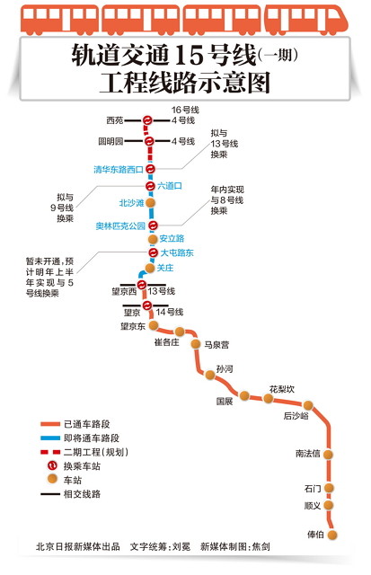 市交通委介绍,15号线是中心城连接顺义的轨道交通线,也是北京东北部新城与中心城的连接通道。这条线的建成将为沿线重要功能区——新国展、望京地区、奥林匹克公园、学院路高校区等提供强有力的交通支持。